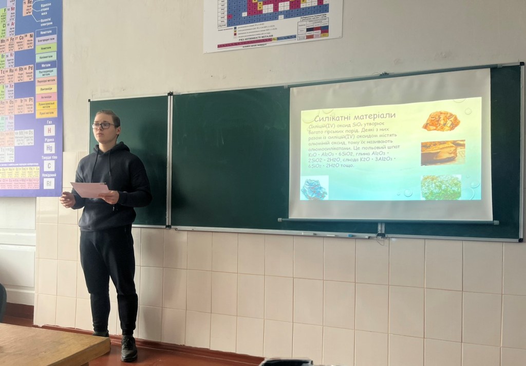 Студенти спостерігали й аналізували досліди «Вивчення мильної дії у м'якій та жорсткій воді»; виконували практичне визначення жорсткості води; презентували навчально-пошукові проєкти на тему «Будівельні матеріали. Цемент» та «Кераміка». Заняття було побудоване так, щоб поєднати теоретичний матеріал із практичними демонстраціями та студентськими дослідженнями – це дало можливість краще засвоїти ключові поняття, побачити реальні приклади впливу складу води на побутові та будівельні процеси, а також оцінити властивості силікатних матеріалів у контексті їх застосування.