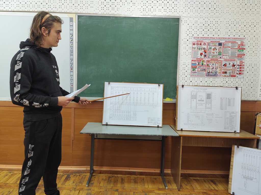 На захист були подані розроблені схеми та креслення графічної частини і розрахунково-пояснювальні записки. Також здобувачі освіти демонстрували мультимедійні презентації.