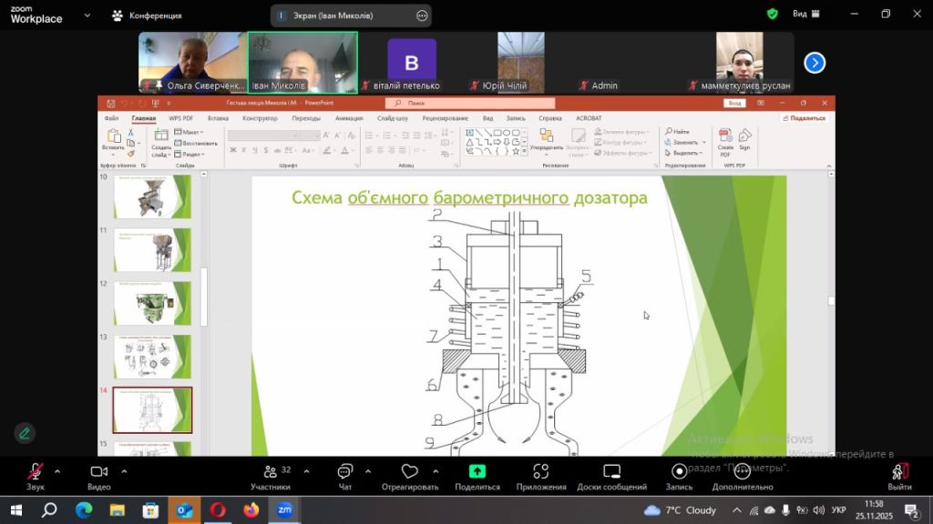 25 листопада 2025 року доцент кафедри технологічного обладнання та комп’ютерних технологій проєктування Національного університету харчових технологій Іван Миколів для здобувачів освіти електромеханічного відділення коледжу презентував гостьову лекцію на тему: «Обладнання для дозування сипучих, рідких та в‘язких матеріалів».