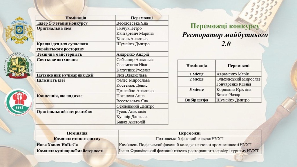 Отже, студенти якнайкраще продемонстрували якість своєї професійної підготовки, уміння творчо мислити та виборювати призові місця. Олімпіада «Ресторатор майбутнього 2.0» стала не лише змаганням, а й важливим освітнім заходом, що сприяє професійному становленню фахових молодших бакалаврів, розвитку їхнього креативного потенціалу та підготовці до майбутньої діяльності в умовах динамічного розвитку індустрії гостинності.