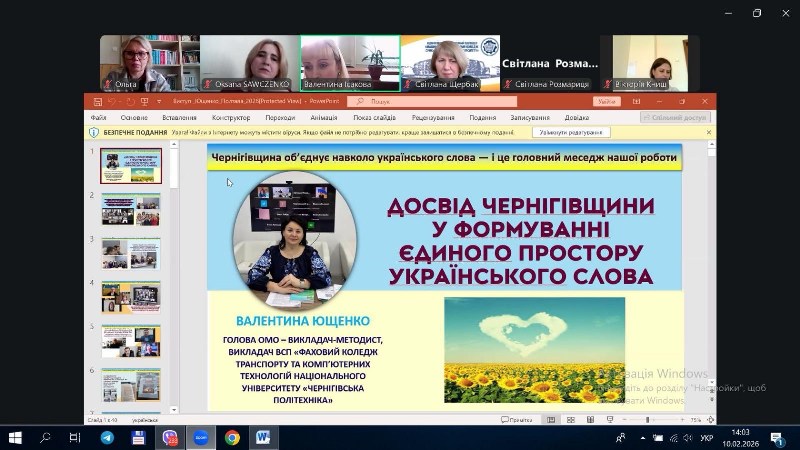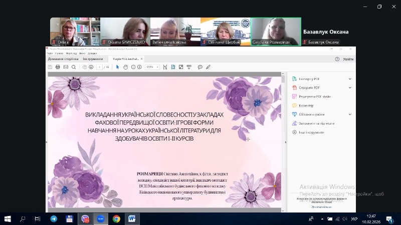 10 лютого 2026 року на базі нашого коледжу в онлайн-форматі відбувся обласний семінар «Українська словесність у закладах фахової передвищої освіти: традиції, виклики, перспективи», що об'єднав викладачів української мови та літератури ЗФПО Полтавської області, а також представників Сумщини, Чернігівщини та Миколаївщини.