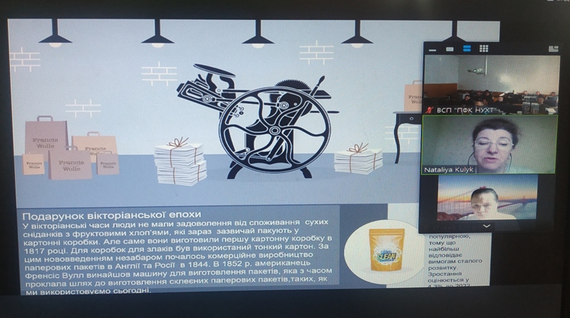 У лекції було висвітлено історію виникнення, функції, роль та структуру упаковки. Матеріал подавався у доступній та інтерактивній формі, доповнювався відеоматеріалами, що сприяло чіткому та послідовному сприйняттю інформації.