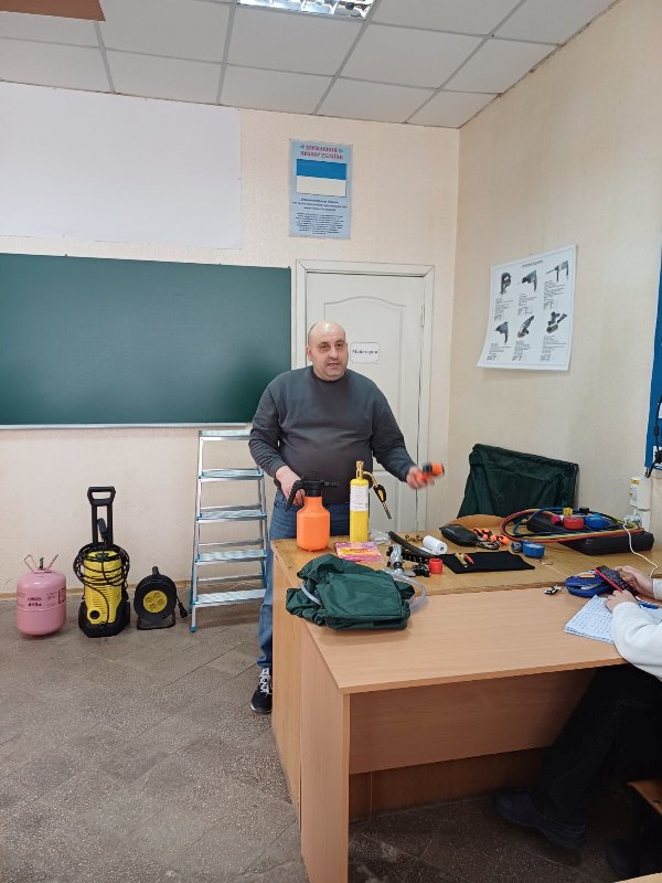 На ньому розглянули основні роботи, які виконуються під час обслуговування кондиціонерів, а також типові помилки та методи їх усунення. Здобувачі освіти ознайомились із професійним інструментом та ставили запитання під час майстер- класу.