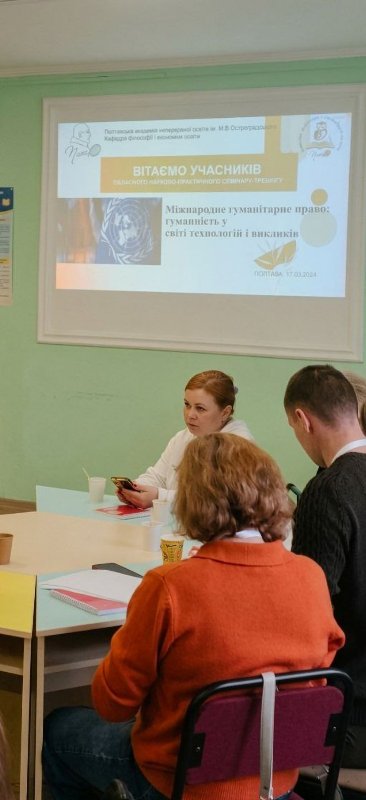 17 березня 2026 року Полтавська академія неперервної освіти імені М.В. Остроградського у співпраці з Українським Червоним Хрестом організувала для вчителів суспільно-гуманітарних дисциплін та усіх зацікавлених громадян науково-практичний семінар-тренінг «Міжнародне гуманітарне право: гуманність у світі технологій і викликів».