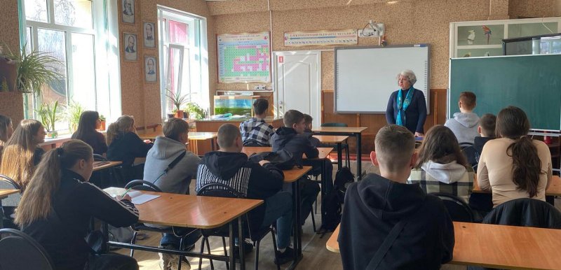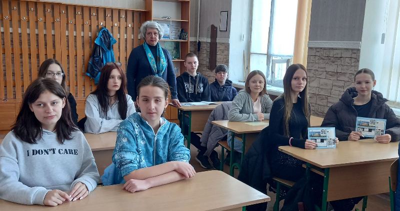 Викладачка розповіла про заклад фахової передвищої освіти та спеціальності, за якими в ньому здійснюється підготовка фахових молодших бакалаврів, і запросила на день вступника, що відбудеться 28 березня 2026 року. Також учні отримали рекламні листівки з інформацією про коледж.