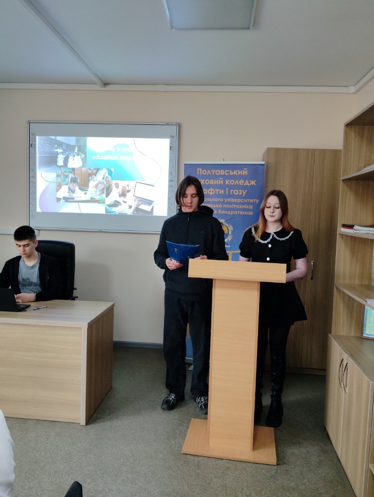 Темою спільного виступу Барило Марини та Пивовара Богдана була “The Importance of Online Education in the Modern World” (Науковий керівник – викладач англійської мови Наталія Бессараб).