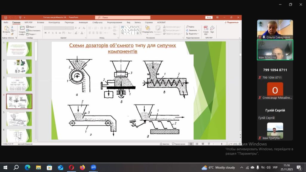 25 листопада 2025 року доцент кафедри технологічного обладнання та комп’ютерних технологій проєктування Національного університету харчових технологій Іван Миколів для здобувачів освіти електромеханічного відділення коледжу презентував гостьову лекцію на тему: «Обладнання для дозування сипучих, рідких та в‘язких матеріалів».
