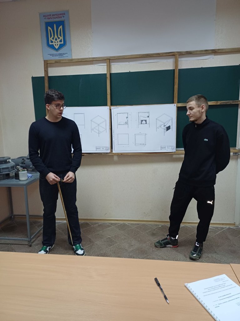 Комісія, у складі викладачів фахових дисциплін Павла Ксенженка та Тетяни Решти, оцінила якість виконання студентами курсових проєктів, уміння обґрунтовувати наведені розрахунки та відповіді на поставлені запитання.