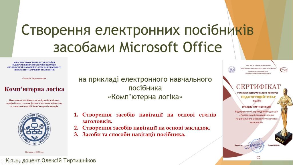14.01.2026 викладач фахових дисциплін, к.т.н., доцент Олексій Тиртишніков провів для викладачів коледжу методичний семінар «Створення електронних посібників засобами Microsoft Office».
